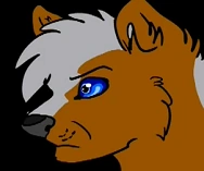 Cliff is a brown male wolf with a silver saddle that goes all the way down to his tail. He's well-built with royal blue eyes, a bushy tail, and a single silver paw.