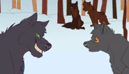 - Meanwhile, back in the alpha cave of the Pack of Night, Sharp comments that she knows the true reason behind Fang's plan to raid the farmer's barn - The death of his former mate and her very own sister, Flutter. The dark pelted wolf sentimentally responds by saying that she had always been the one knowing him the best out of the wolves alive. He then asks her if she had ever considered combining their two packs, followed by remarks on her obvious feelings towards the male, which had already existed during the time Fang chose Flutter as his mate instead of the much shyer Sharp. However, the alpha of the Pack of Falling Stars promptly realizes that the other is trying to manipulate her by taking advantage of her feelings through sweet-talk. Outraged by his attempts, she expresses her disappointment in him and declares that her pack will have no further business with the Pack of Night.